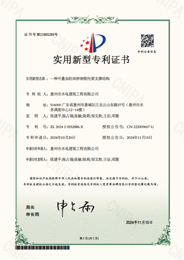 惠州市水電建筑工程有限公司成立于一九六四年四月,隸屬惠州市水務(wù)集團(tuán)有限公司,是一家國(guó)有綜合性施工企業(yè),主營(yíng)水利水電工程、房屋建筑、市政工程等施工業(yè)務(wù)。公司擁有水利水電工程施工總承包一級(jí)、建筑工程施工總承包一級(jí)、市政公用工程施工總承包一級(jí)、公路工程施工總承包三級(jí),公路路基、路面及建筑裝修裝飾專業(yè)承包二級(jí),環(huán)保工程、機(jī)電安裝、河湖整治、輸變電工程專業(yè)承包三級(jí)等經(jīng)營(yíng)資質(zhì)……